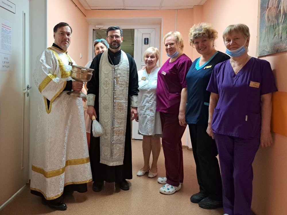 19 января иерей Виталий Антохин отслужил водосвятный молебен с чином освящения Великой Агиасмы в больнице святой княгини Ольги.
