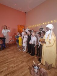 В воскресенье, 15 января, в воскресной школе при храме Благовещения Пресвятой Богородицы на Васильевском острове был Рождественский праздник. Он начался ещё в храме, где после воскресной проповеди перед прихожанами выступил хор «Небушко» под руководством Ирины Сергеевны Покровской. Ребята исполнили колядки и песни, посвящённые Рождеству. Настоятель храма, протоиерей Андрей Дьяконов, похвалил звонкие голоса и выразил надежду, что хор будет расширяться. Детям вручили подарок в украшенной корзине. Праздник продолжился в часовне, где был накрыт стол и своими силами подготовлен концерт. Дети читали стихи, пели песни, играли на музыкальных инструментах, были представлены и семейные номера. Среди гостей были священники: настоятель храма, отец Андрей Дьяконов, и куратор воскресной школы отец Леонид Казаков. Они поздравили Наталью Викторовну, директора школы, с Днём рождения, а детей и родителей с Праздником.