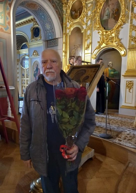 Автор освященного образа просветителя Японии — Николай Иванович Абеленцев, прихожанин храма, член Союза художников Санкт-Петербурга. Отец Андрей поблагодарил его за принесенную в дар храму икону и поздравил с 90-летним юбилеем, который Николай Иванович встретил в октябре.