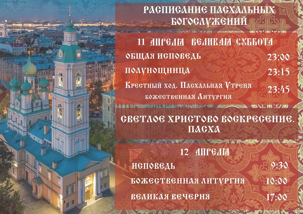 Расписание пасхальных богослужений, 11 апреля — Великая Суббота, 12 апреля — Светлое Христово Воскресение. Посмотреть расписание.