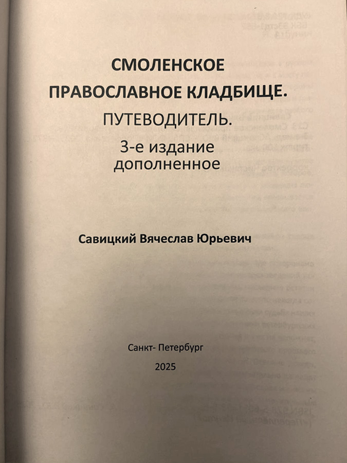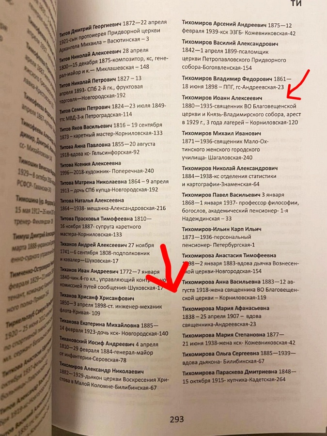 Решили посмотреть в путеводитель по Смоленскому кладбищу, который был издан в прошлом году. Оказалось, рядом с могилой Анны Васильевны значится могила протоиерея Иоанна Тихомирова. Получается, это то самое безымянное захоронение!