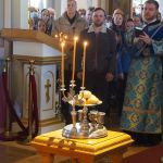 Верующим раздали иконки особо чтимых петербургских святых.