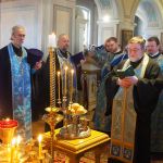 Его Высокопреосвященству сослужили секретарь епархиального управления протоиерей Сергий Куксевич, благочинный Василеостровского округа протоиерей Евгений Шогенов, настоятель протоиерей Андрей Дьяконов с клиром, иерей Павел Ермошкин и другие священнослужители.