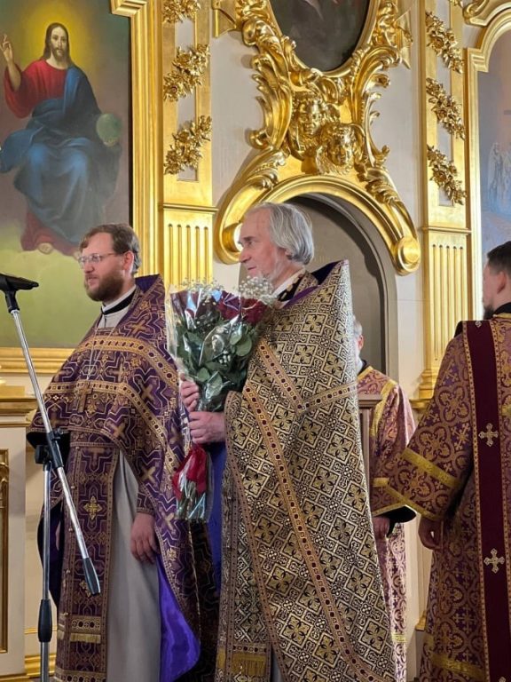 В поздравительном слове настоятель храма протоиерей Андрей Дьяконов отметил особое служение отца Леонида. Пожелал благополучия и доброго здравия батюшке.