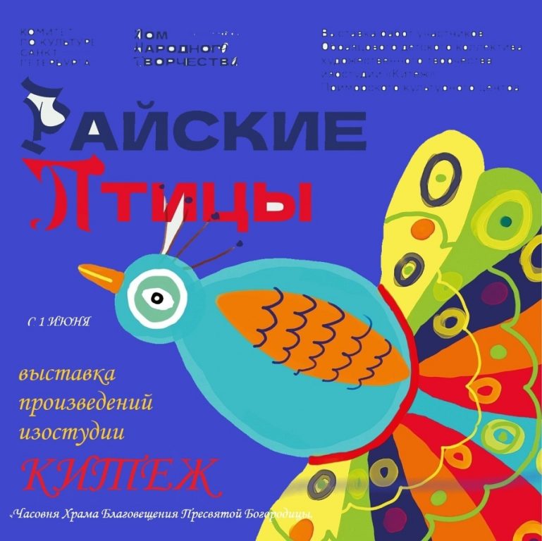 В лекционном зале часовни храма Благовещения Пресвятой Богородицы на Васильевском острове с 1 июня открывается выставка работ воспитанников Образцового детского коллектива студии живописи «Китеж» ГБУПКЦ Санкт-Петербурга. Выставка называется «Райские птицы». Руководитель студии — преподаватель воскресной школы Благовещенского храма, Андрей Владимирович Синельников. Выставка приурочена к международному Дню защиты детей.