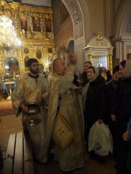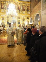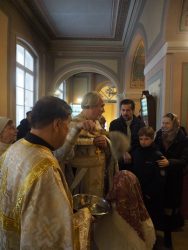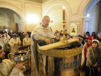 В понедельник, 19 января, в храме Благовещения Пресвятой Богородицы праздновали Святое Богоявление, Крещение Господа Бога и Спаса нашего Иисуса Христа. Служили и раннюю, и позднюю Литургии, молебен с чином великого освящения воды. До позднего вечера на первом этаже храма всем желающим раздавали крещенскую воду. Среди добровольных помощников на раздаче воды трудились участники молодёжного клуба «Вонмем».