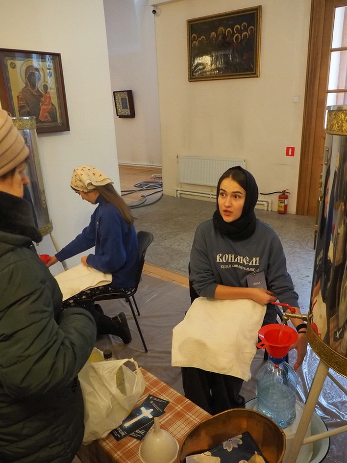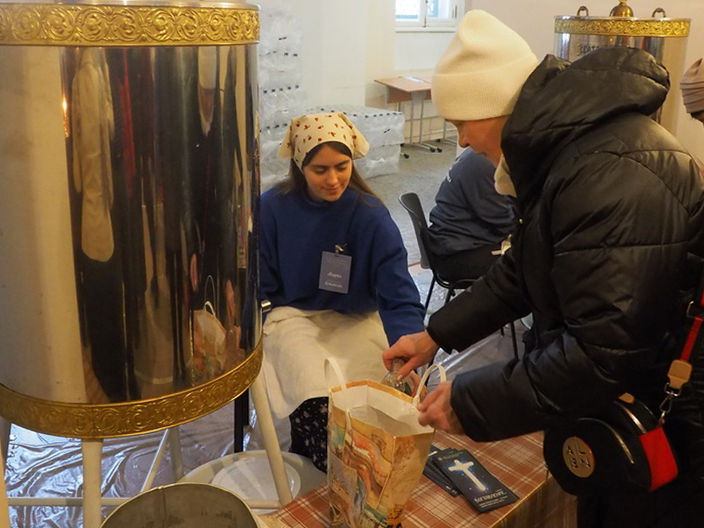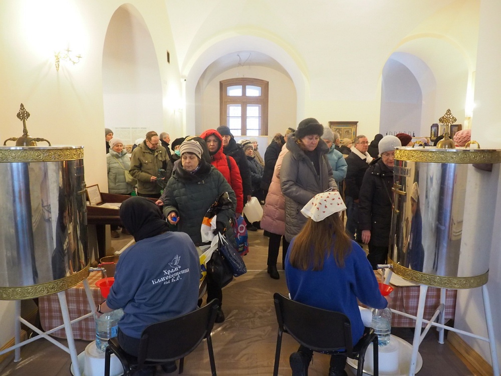 В понедельник, 19 января, в храме Благовещения Пресвятой Богородицы праздновали Святое Богоявление, Крещение Господа Бога и Спаса нашего Иисуса Христа. Служили и раннюю, и позднюю Литургии, молебен с чином великого освящения воды. До позднего вечера на первом этаже храма всем желающим раздавали крещенскую воду. Среди добровольных помощников на раздаче воды трудились участники молодёжного клуба «Вонмем».