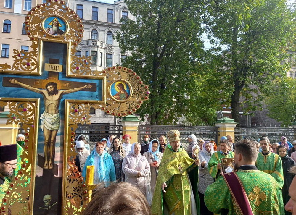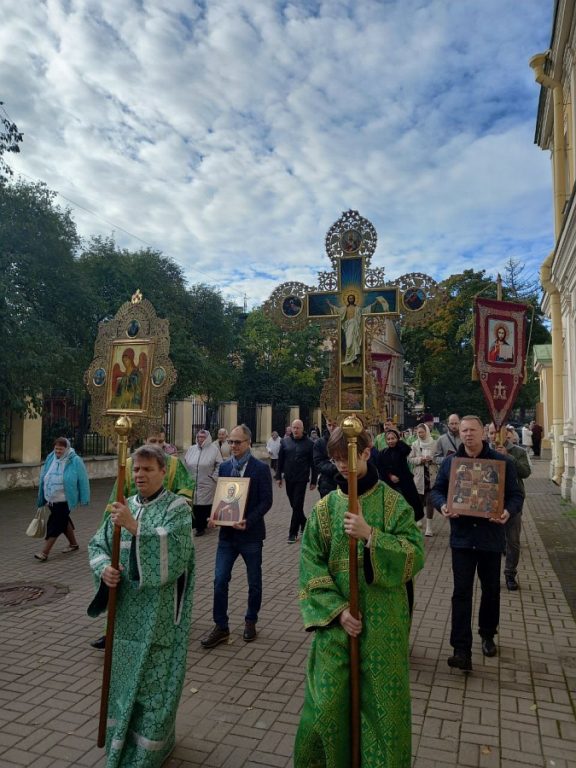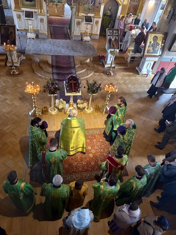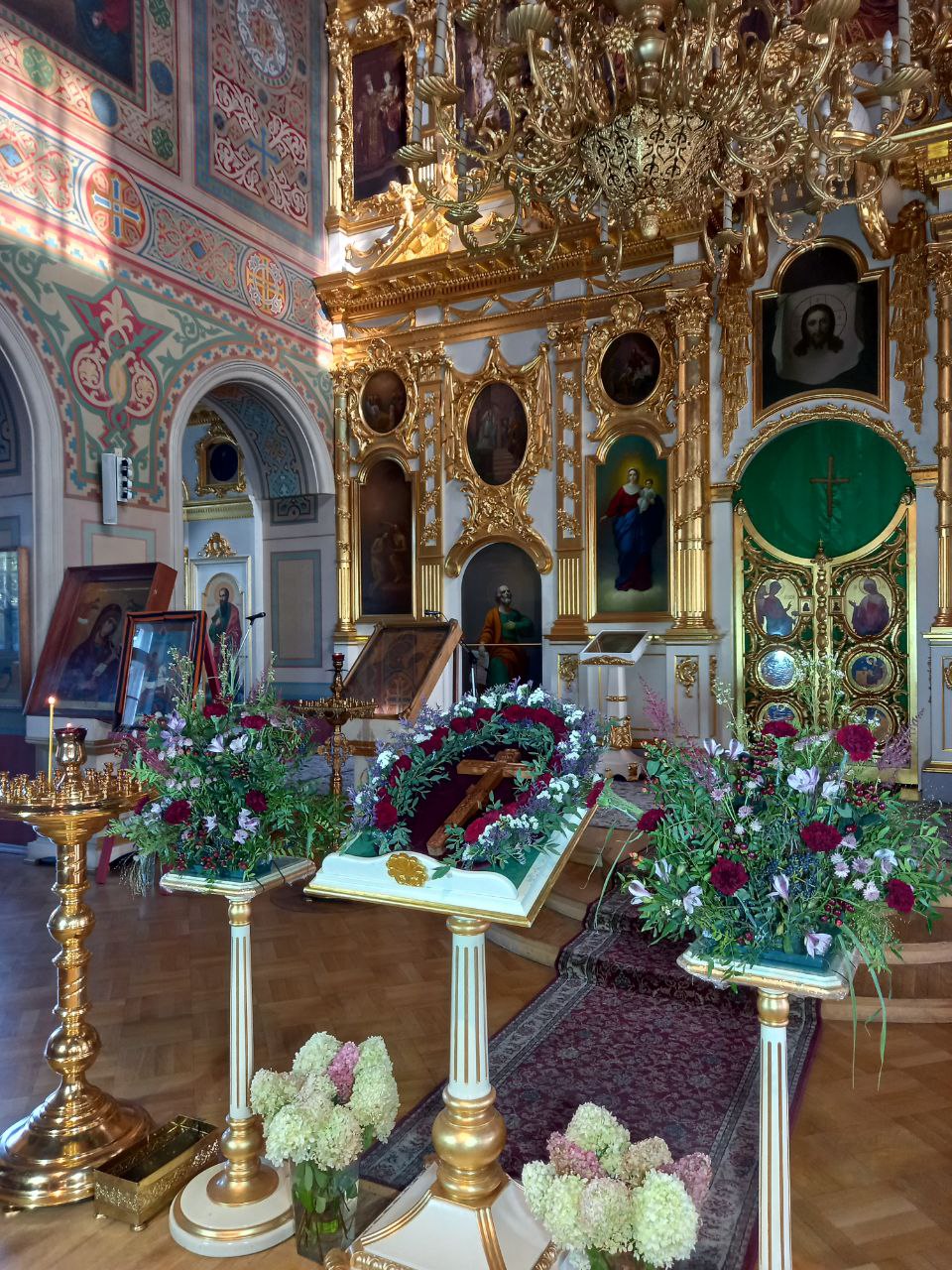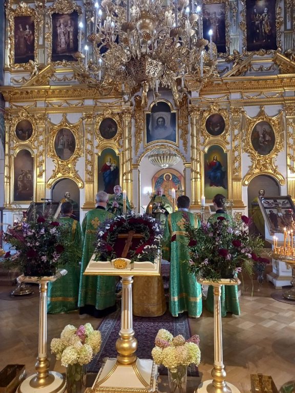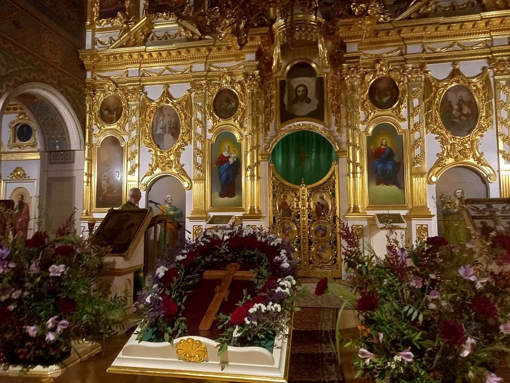 Фотографии с праздничных богослужений. Накануне праздника, 26 сентября, состоялось всенощное бдение. 27 сентября, в субботу, Божественная литургия, крестный ход и водосвятный молебен.