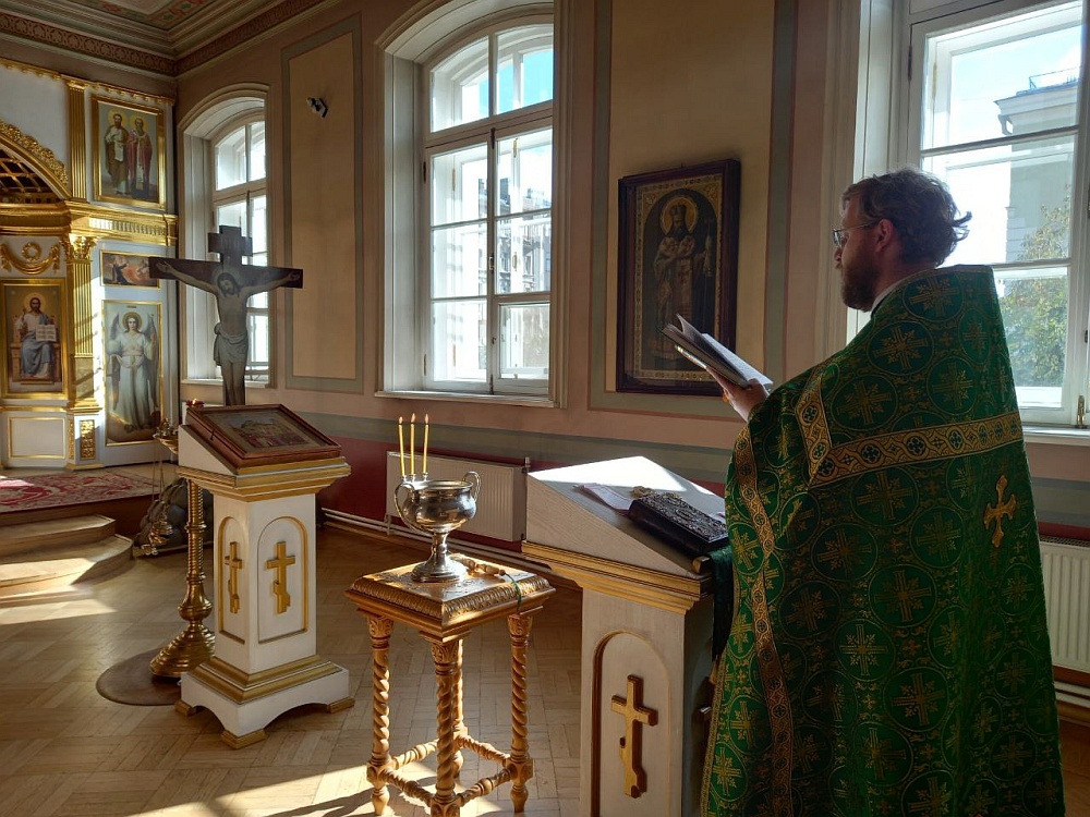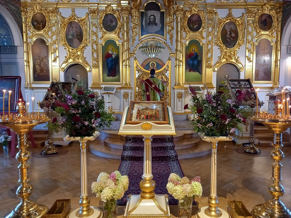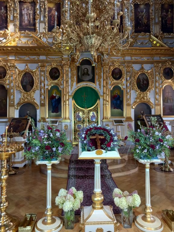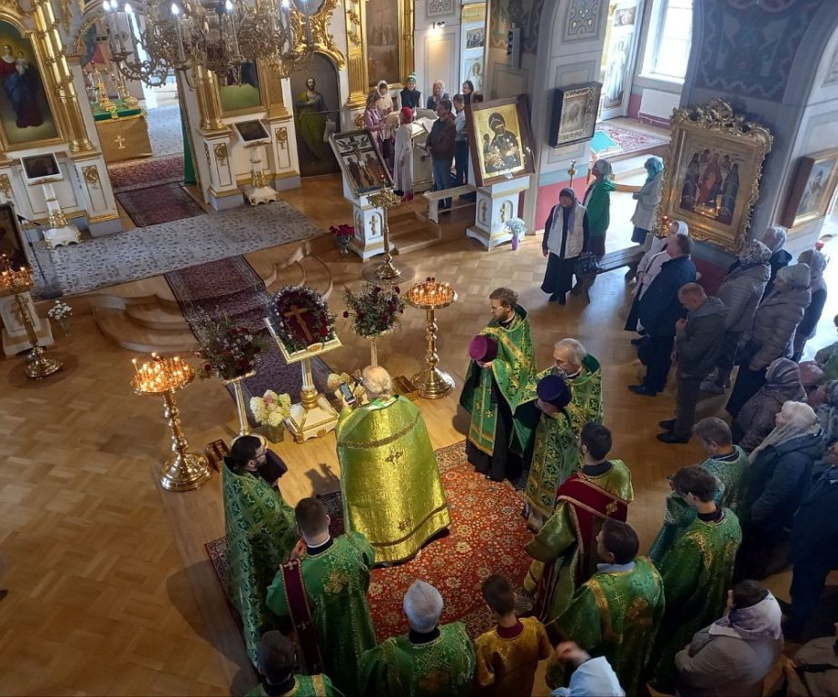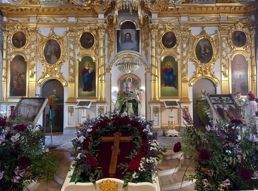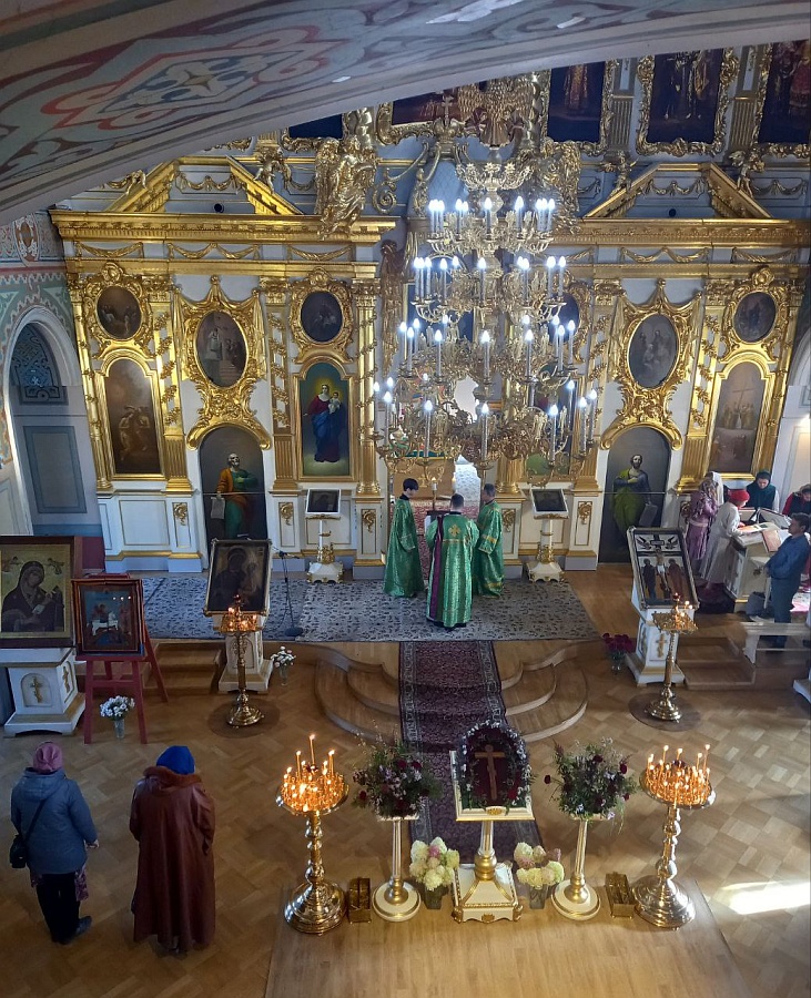 Фотографии с праздничных богослужений. Накануне праздника, 26 сентября, состоялось всенощное бдение. 27 сентября, в субботу, Божественная литургия, крестный ход и водосвятный молебен.