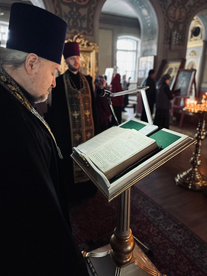 В первые четыре дня Великого поста в Благовещенском храме совершалось Великое повечерие с чтением Великого покаянного канона преподобного Андрея Критского. Удивительная красота и глубина этого богослужения помогают погрузиться в него даже тем, кто пришёл слушать канон впервые. Но самое лучшее — участвовать в Великом повечерии, имея перед глазами его текст. Найти книгу с текстом канона нетрудно в магазинах и церковных лавках, а текст всего богослужения можно иметь перед глазами, открыв сайт «Последование богослужений наряду». Здесь можно найти тексты всех богослужений Великого поста и не только.